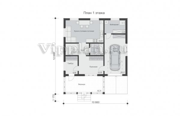 | Размеры дома: | 10.66м×13.83м |