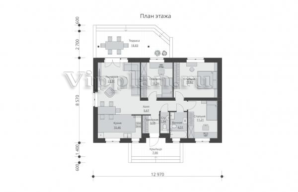 | Размеры дома: | 12.97м×11.27м |