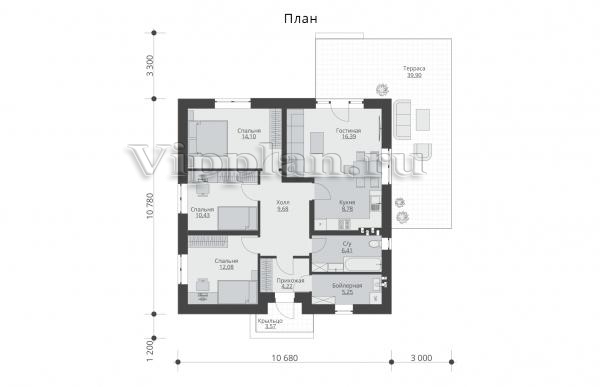 | Размеры дома: | 10.78м×10.68м |